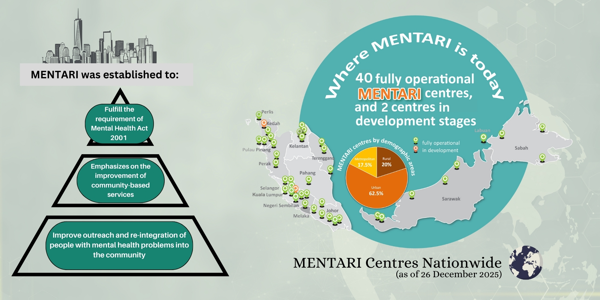 MENTARI is a new approach initiated by the Ministry of Health Malaysia (MOH) to improve outreach and re-integration of people with mental health problems into the community.